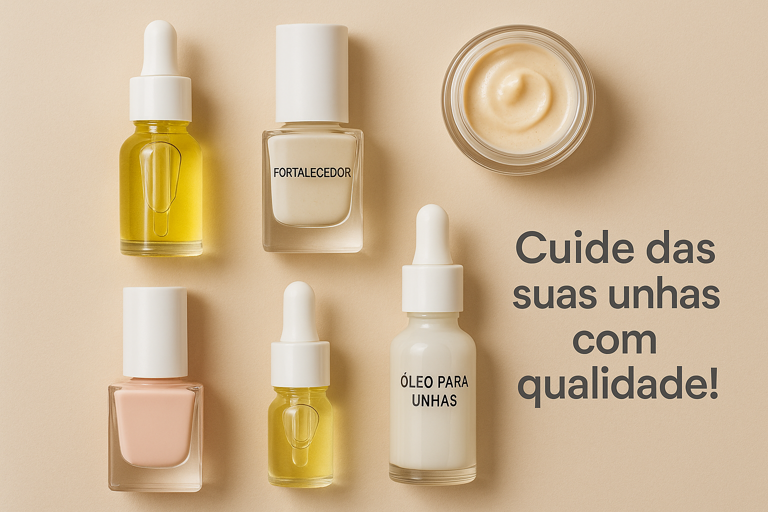 - Óleos para Unhas: Oliva, jojoba ou vitamina E.